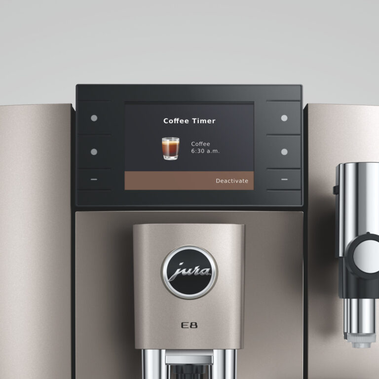 Kávovar E8 fascinuje také inteligentními technologiemi, jako je např. funkce Coffee Timer. Díky ní, si můžete naplánovat svou ranní kávu přes aplikaci J.O.E.® a vychutnat si ji čerstvě namletou a připravenou ihned poté, co vstanete.