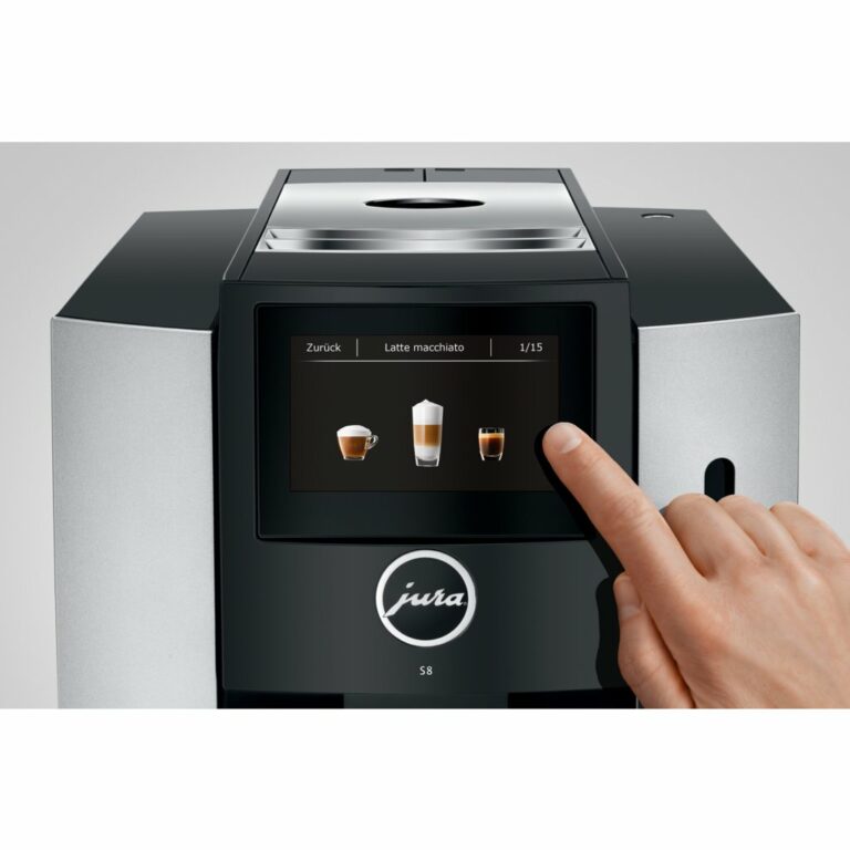 Přehledně a pohodlně se prezentuje ovládání přes barevný displej 4,3″ dotykové obrazovky s vysokým rozlišením, který je součástí plně automatického kávovaru. Stačí se lehce dotknout obrazovky špičkou prstu a již se šálek začne plnit oblíbenou kávovou specialitou. Inovativní filosofie ovládání přes působivou obrazovku se vyznačuje jasnou srozumitelností a odpovídá duchu moderní doby. Díky grafikám a animacím k návodu je navigace naprosto intuitivní a jsou tak zobrazeny všechny kroky při přípravě kávy. Vede přímou cestou k cíli. Individuální preference uživatele je možné naprogramovat v několika málo krocích. Přejmenovat, přemístit, kopírovat, zdvojnásobit – S8 vše zařídí.